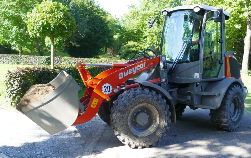 »Der 5-Tonnen-weycor passt ideal zu vielen Baustellen. Er ist schnell, stark und solide. Und wir können sehr präzise damit arbeiten«, sagt Christian Kruse, Geschäftsführer von Kruse Gartenbau aus Paderborn. Der »AR 420« ist ein 5,3-Tonnen-Radlader, der von einem Deutz-Motor mit 55,4 kW/75,3 PS angetrieben wird. Er hat eine Kipplast gestreckt mit Standardschaufel von 4018 Kilogramm, kann bis zu 3960 Millimeter hoch reichen und hat einen Knickwinkel von 40° beidseitig. Das sind gute Voraussetzungen, um bei Poolanlagen, Gartenpflege, Mauern und Hangbefestigungen, Terrassen, Spiellandschaften, Gartenteichen und Bachläufen die notwendigen Arbeiten auszuführen.