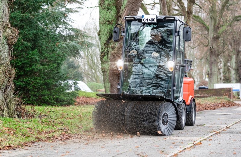 Im Bereich der Reinigungstechnik befreit der »Citymaster 400« mit einem effektiven Behältervolumen von 450 Litern Flächen von Laub, Schmutz und Müll. Mit dem optionalen Hochdruckreiniger lassen sich lokale Verschmutzungen leicht wegwaschen. Die Maschine reinigt umweltfreundlich und effizient. Der emissionsarme Benzinmotor der Abgasstufe V (24,2 kW) mit Hydrostat-Fahrantrieb (4×4) und einem 3-Wege-Kat läuft ebenso effizient wie vibrations- und geräuscharm. Im Vergleich zu einem Fahrzeug mit Dieselmotor wird kein AdBlue für die Abgasnachbehandlung verbraucht und so zusätzlich Kosten und Aufwand reduziert.