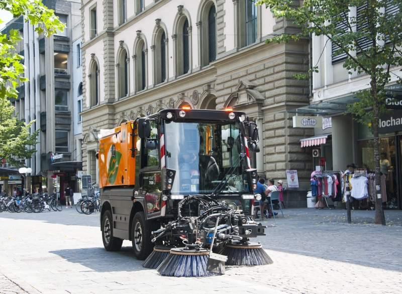 Die vollelektrische »eSwingo 200+« ist für tägliche Reinigungsarbeiten auf Fuß- und Radwegen im innerstädtischen Bereich sowie in Parkhäusern eine ideale Lösung (Bild: Aebi Schmidt).