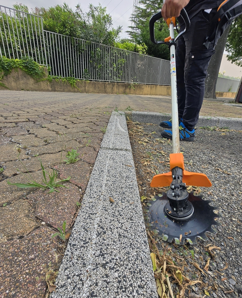 Der »City Cut 2« ermöglicht noch bodennaheres Bearbeiten von Unkräutern und effizientere Mäh- und Schnittarbeit bei hohem Gras und Gestrüpp bei reduziertem Verschleiß der Klingen. Die Nase des Schneidkopfs ist so konstruiert, dass sie frei mitdreht – auch bei Bodenkontakt. Damit werden die Rotation und der Schneidvorgang nicht gestoppt oder unterbrochen.