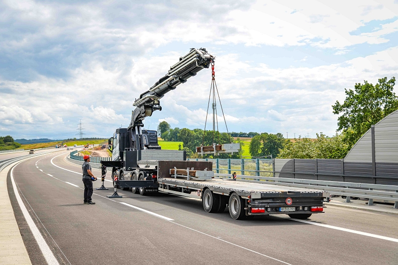 Zum Fahrzeugpark von Auto Kurz gehört auch der »F1250R-HXP«, der neueste Vertreter der »Techno«-Baureihe, der auf ein Volvo-Fahrgestell aufgebaut ist. Der Geschäftsführer beschreibt die zahlreichen Einsatzmöglichkeiten des Ladekranes: So war kürzlich das Kranfahrzeug in einem Sägewerk im Einsatz. Dort stand die Wartung der Anlage an, dafür musste der sogenannte Holzausrücker demontiert werden. Mithilfe des Fassi-Kranes war das für den Fahrer kein Problem. Das galt ebenfalls für die Anlagenrevision in einer Biogasanlage. Dort bestand die Aufgabe, Paddelrührwerke auszutauschen. Danach wurde mithilfe des Ladekranes ein Netz angebracht, das in weiterer Folge zur Montage der Haube für die Biogasanlage dient. Wie Auto Kurz‘ Geschäftsführer Daume informierte, erfolgten die Arbeiten auch bei diesem Einsatz des »F1250R-HXP« problemlos. Er lobte die Fassi-Technik, die sich durch ihre Vielseitigkeit und Leistungsstärke auszeichnet. So werden die Krane für die verschiedensten Arbeiten auf Dächern eingesetzt. Dabei geht es meist darum, die unterschiedlichsten Baustoffe auf die Dächer oder Türme zu bringen und damit die Arbeit der Dachdecker und Zimmerer erheblich zu erleichtern. Das seien typische Einsätze, die in der Region rund um Willingshausen öfters erfolgen, so Daume. Gleiches gelte ebenfalls für Baustellen, auf denen Betonfertigteile verarbeitet werden. Auch hierbei habe ein Ladekran gegenüber einem Autokran viele Vorteile, die er ausspielen könne. Er benötige auch weniger Platz beim Entladen als ein Mobilkran.