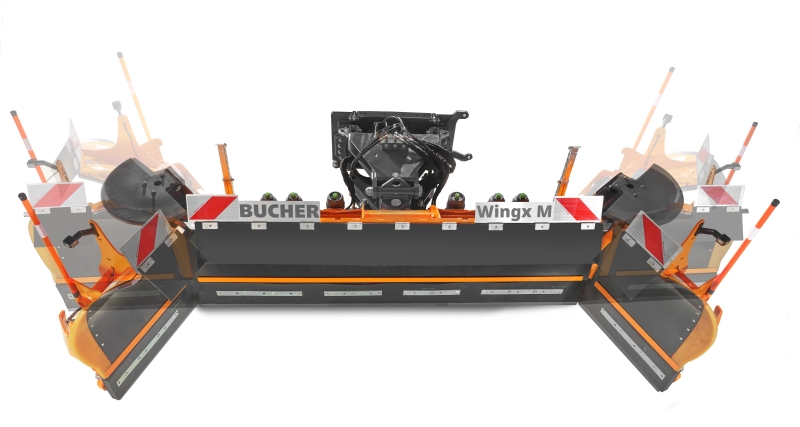 Der Bucher »Wingx« wurde mit dem Ziel entwickelt, hauptsächlich öffentliche Plätze, Parkplätze oder allgemein große Flächen zu räumen. Dem zentralen Element wurden zwei Seitenflügel mit einem großen Rotationsradius von insgesamt 130° (70° positiv und 60° negativ) hinzugefügt. Ferner ermöglicht die Rotation des gesamten Pfluges um ± 30° eine unbegrenzte Anzahl von Arbeitspositionen. Die Schar aus hochdichtem Polyethylen verhindert dank ihrer Antihaft-Eigenschaft das Festkleben von Schnee. Es sind drei verschiedene Modelle mit einer Gesamträumbreite von 3000 bis 5000 mm erhältlich. Der Schneepflug ist mit einem mechanischen Niveauausgleich ausgestattet, mit dem er sich optimal an die Fahrbahn anpasst.
