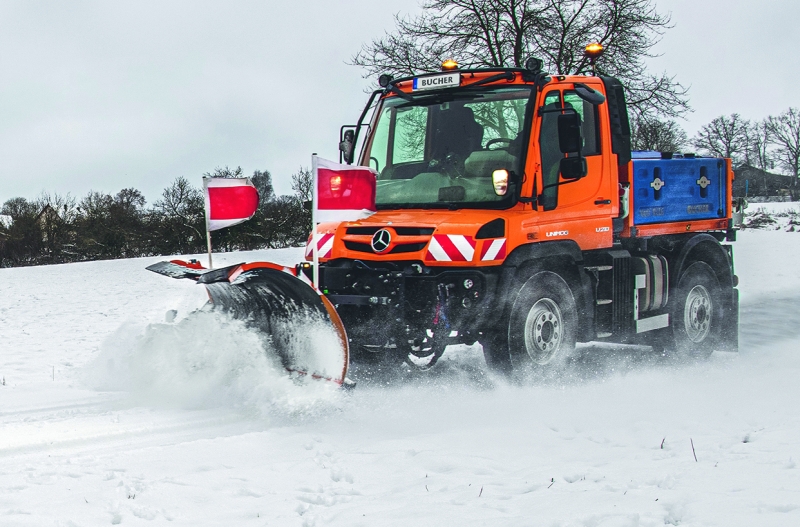 Unimog U218 mit »Unix«-Schneepflug (Bild: Bucher Municipal).