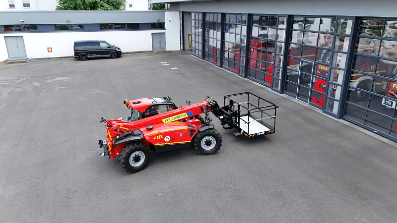 Durch den Einsatz eines Manitou-Teleskopladers kann die Sicherheit der Einsatzkräfte und der betroffenen Personen verbessert werden, da Gefahrenbereiche unbedenklicher erreicht werden können. Um die Situation jederzeit im Blick zu behalten, sorgen Kameras an der Front, am Heck und an der Seite für eine Rundumsicht. Je nach Modell ist auch eine Steuerung der Maschine über Funk möglich.