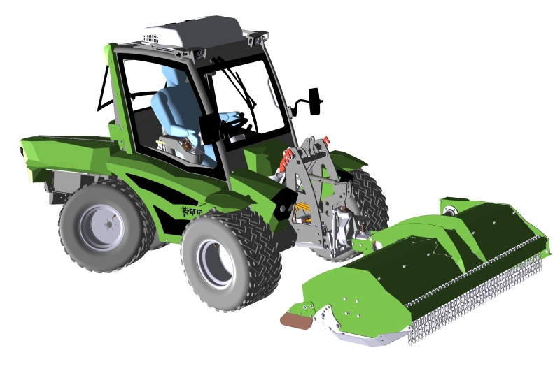 Seit 2023 arbeitet das Unternehmen an dem Fahrzeug, das für den Ganzjahreseinsatz bei Kommunen, in der Gewässerunterhaltung, bei Straßenmeistereien sowie im alpinen Gelände konzipiert ist. Der Geräteträger lässt sich mit verschiedenen Anbaugeräten wie Doppelmessermähwerken, Mulchgeräten und Bandrechen sowie weiteren kommunalen Anbaugeräten wie einem Gießarm mit Wassertank oder einem Schneeschild mit Aufbaustreuer kombinieren. Das Fahrzeug ermöglicht, die Anbaugeräte durch ein Schnellwechselsystem zu tauschen, ohne das Fahrzeug zu verlassen.