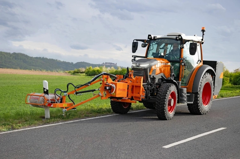 Für die Grünflächenpflege, den Winterdienst oder die Entsorgung von Laub ist er bestens geeignet. Denn: Bewährte Komponenten aus der erfolgreichen »200er«-Baureihe dienen als Grundlage für das elektrifizierte Antriebssystem – vorhandene Anbaugeräte können dadurch uneingeschränkt weitergenutzt werden. Abgas- und Lärmemissionen reduzieren und nachhaltiger arbeiten, das ist das Ziel von vielen Kommunen, wofür sie praktische Maschinen mit alternativen Antrieben brauchen. Mit dem Elektroantrieb und dem Fendt Variogetriebe ist der »e100 V Vario« umweltfreundlich und flexibel einsetzbar. Er kann mit selbst erzeugtem grünen Strom geladen werden, was die Betriebskosten deutlich senkt und die CO₂-Emissionen signifikant reduziert. Seine kompakten Maße und das abgasfreie Arbeiten ermöglichen den anspruchsvollen Einsatz, wie zum Beispiel bei der Pflege von Parkanlagen, Radwegen, Seitenstreifen und bei Kehr- und Räumarbeiten.