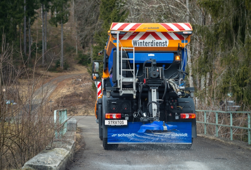 Die Schmidt »Straliq«-Sprühmaschine wurde speziell für den Sprüheinsatz von Sole konzipiert und ermöglicht präzises Sprühen auf großen Flächen und mehrspurigen Straßen. Sprühen reduziert nicht nur den Salzverbrauch und schont die Umwelt, sondern ist zugleich eine sehr wirtschaftliche, schnelle und effiziente Methode zur Glatteisbekämpfung.