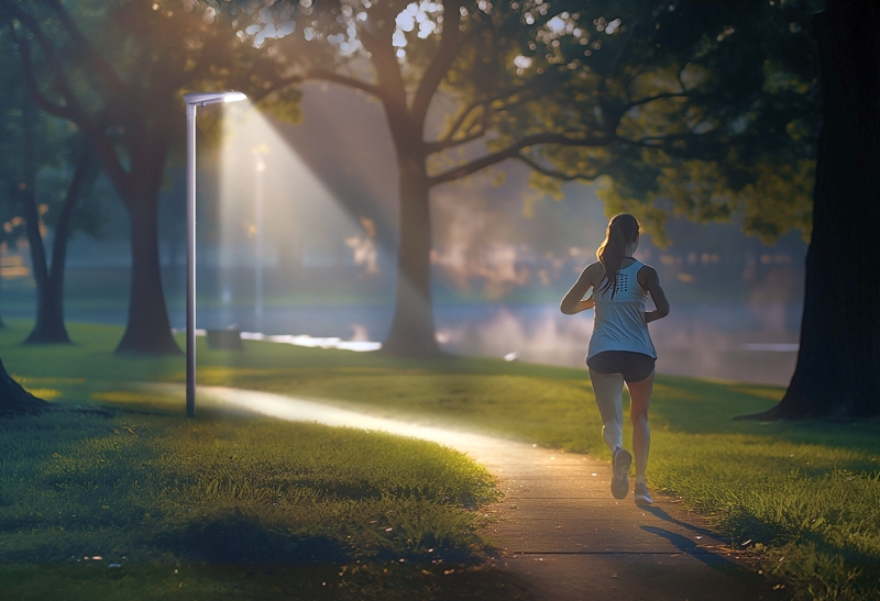 Noch wirkungsvoller wird die Sanierung mit intelligentem Licht: Die Sensorik steuert bedarfsgerecht, dimmt automatisch, führt sicher und schützt nachtaktive Tiere. Durch anpassbare Lichtfarben liefert die Beleuchtung zur richtigen Zeit das passende Spektrum: Bei Bewegung und Verkehr werden 3000 K warmweiß für klare Sicht und höhere Verkehrssicherheit genutzt, in sensiblen Nachtstunden hingegen 2200 K, um Biodiversität und Nachtruhe zu schützen. Präzise Optiken minimieren Blendung und Streulicht. So finden Natur und urbanes Leben zusammen.